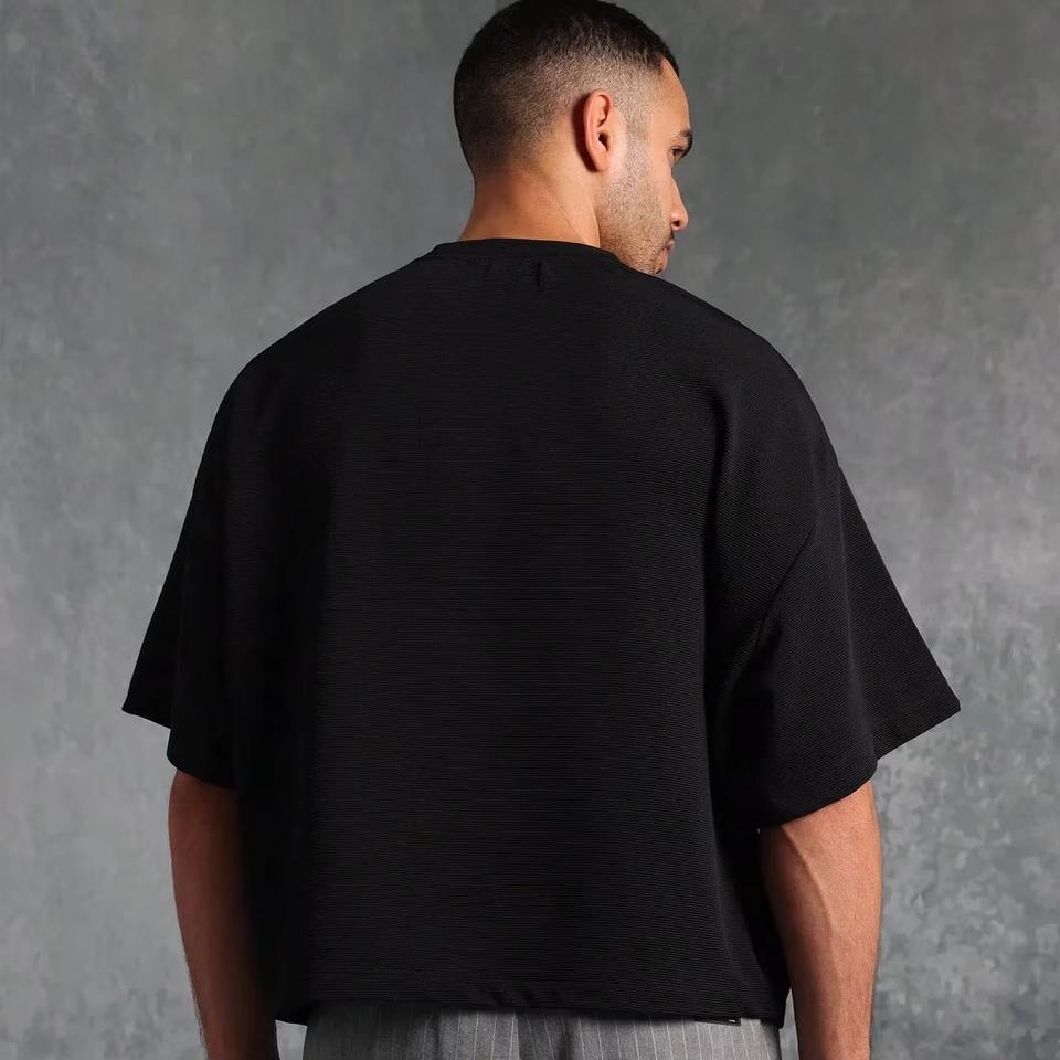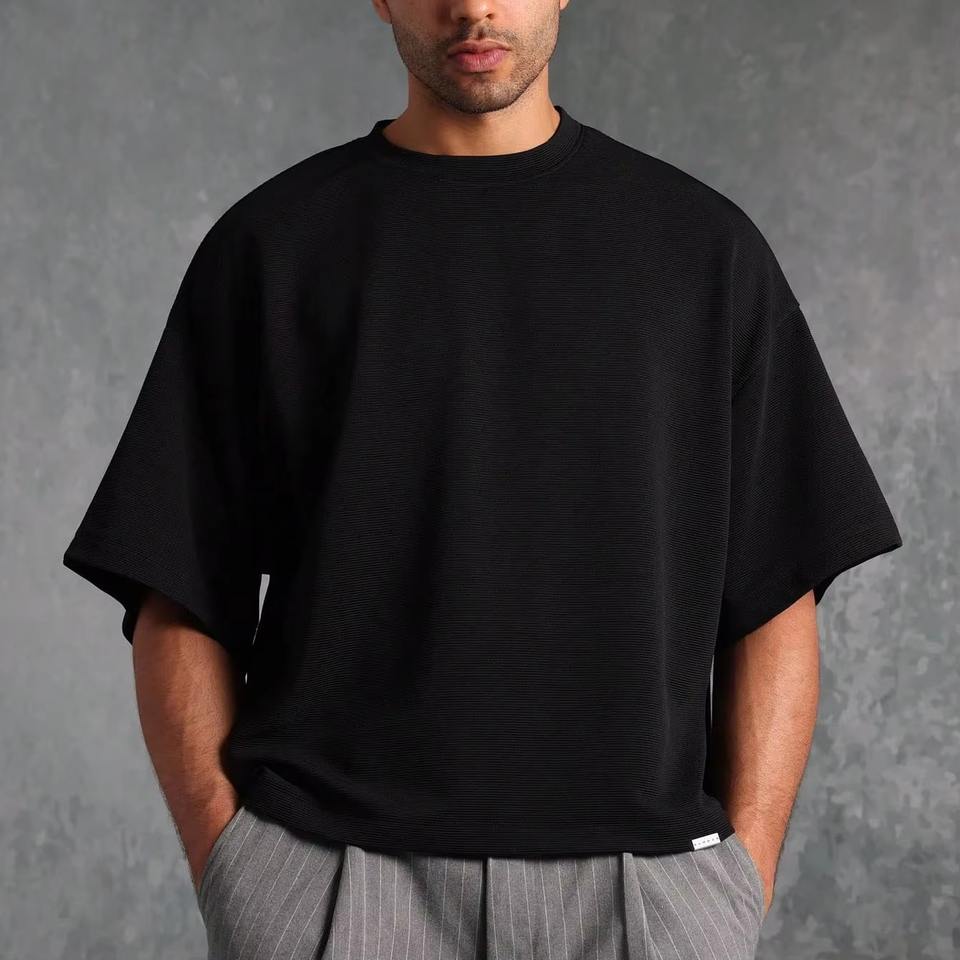 Camiseta de Hombre de Corte Cuadrado, Lavado a la Piedra, de Poliéster y Algodón, Estilo Casual Oversize, Disponible en Varios Tamaños