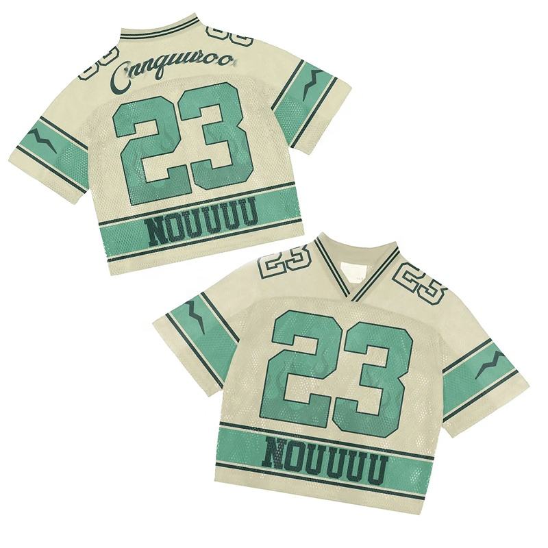 Camisetas cuadradas para hombre, camiseta de fútbol de malla de fútbol de gran tamaño de secado rápido, diseño de estilo callejero personalizado del fabricante, letra en blanco