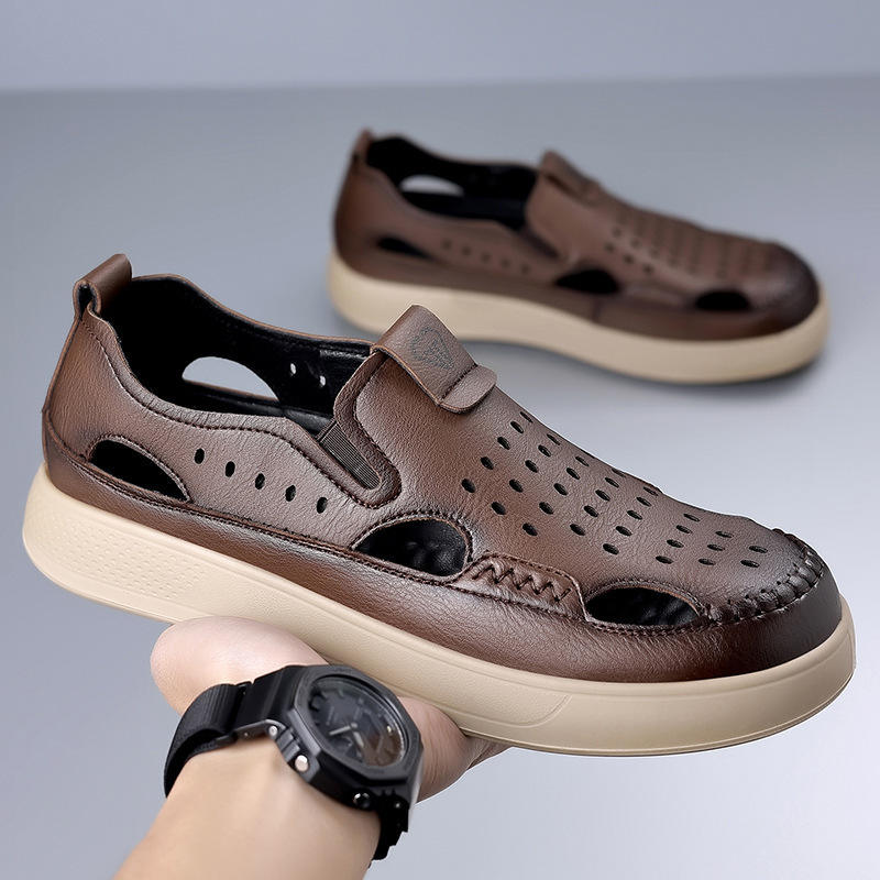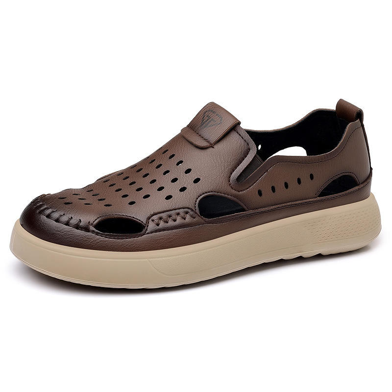 Zuecos Transpirables para Hombre, Sandalias Sin Cordones para Exteriores, Color Marrón, Suela Antideslizante, Zapatos Casuales para Personas de Mediana Edad