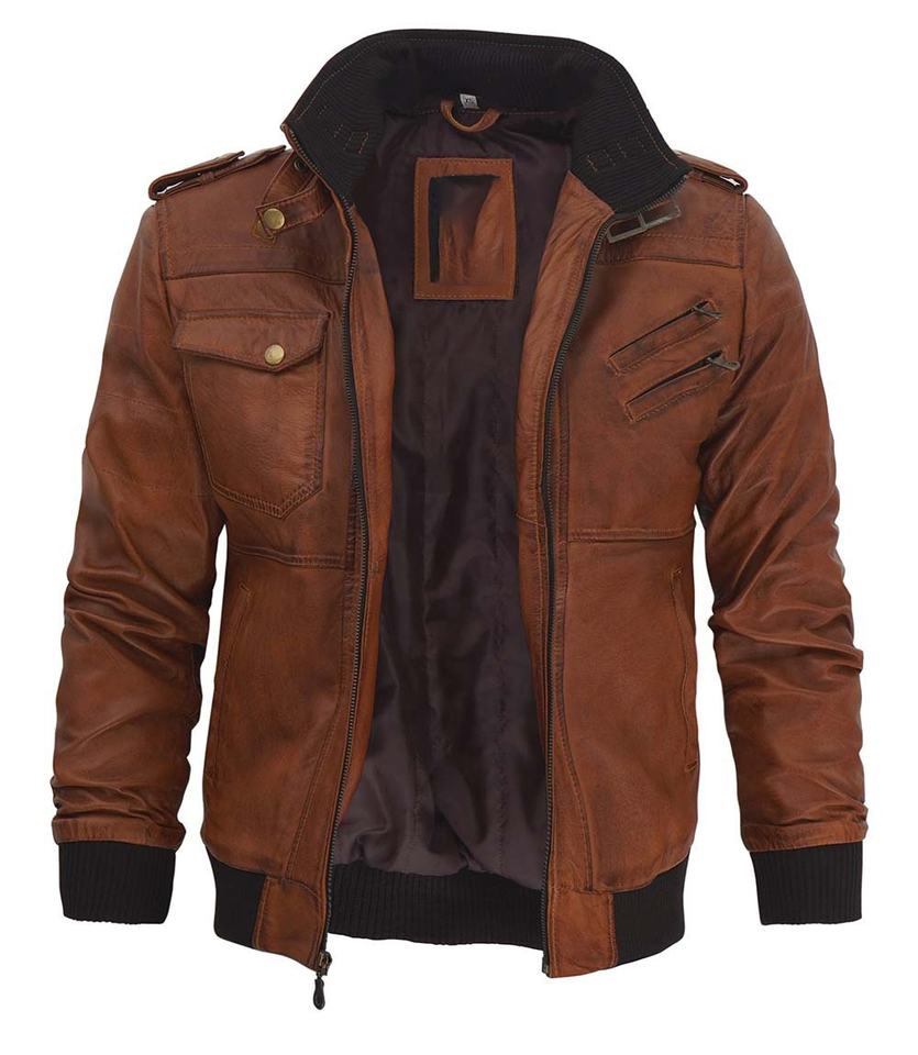 Chaquetas de Cuero Estilo Bomber Marrón para Hombre, Cuello Alto, Totalmente Personalizadas, de Alta Calidad, Invierno, Curtidas, Gruesas