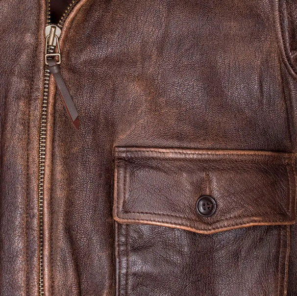 Chaqueta de cuero real desgastada marrón para hombre chaqueta de cuero con cuello de piel bomber