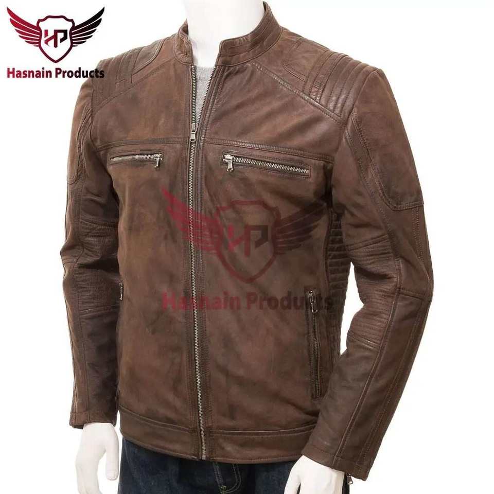 Chaqueta de motorista de cuero Metrial Plus de calidad superior única marrón para hombre, elegante abrigo de motocicleta con acabado mate para ciclistas urbanos a la moda