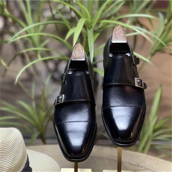 Men's Business Formal Square Toe Lace-Up Monk Shoes Trendy Gentleman Casual Handmade Lightweight Breathable Anti-Slip Valentina