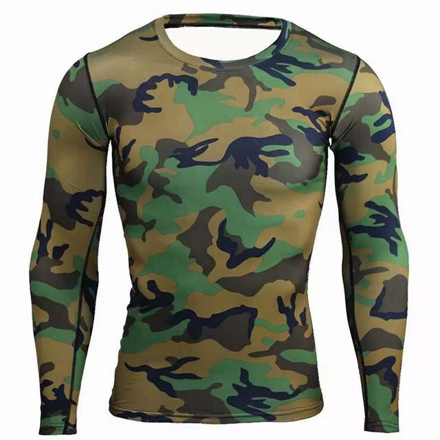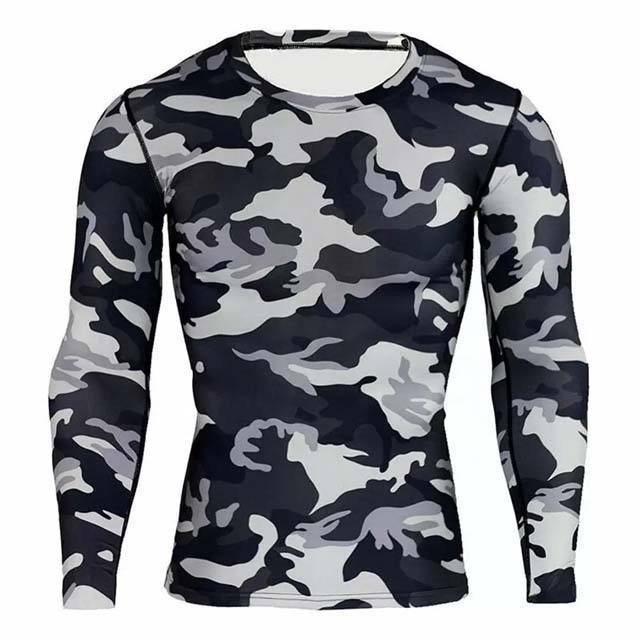 Camisetas de Compresión de Manga Larga con Diseño de Camuflaje para Hombre, Ropa Deportiva Ajustada de Secado Rápido, Camisetas de Poliéster para Fisicoculturismo, Camisetas Rash Guard para Hombre