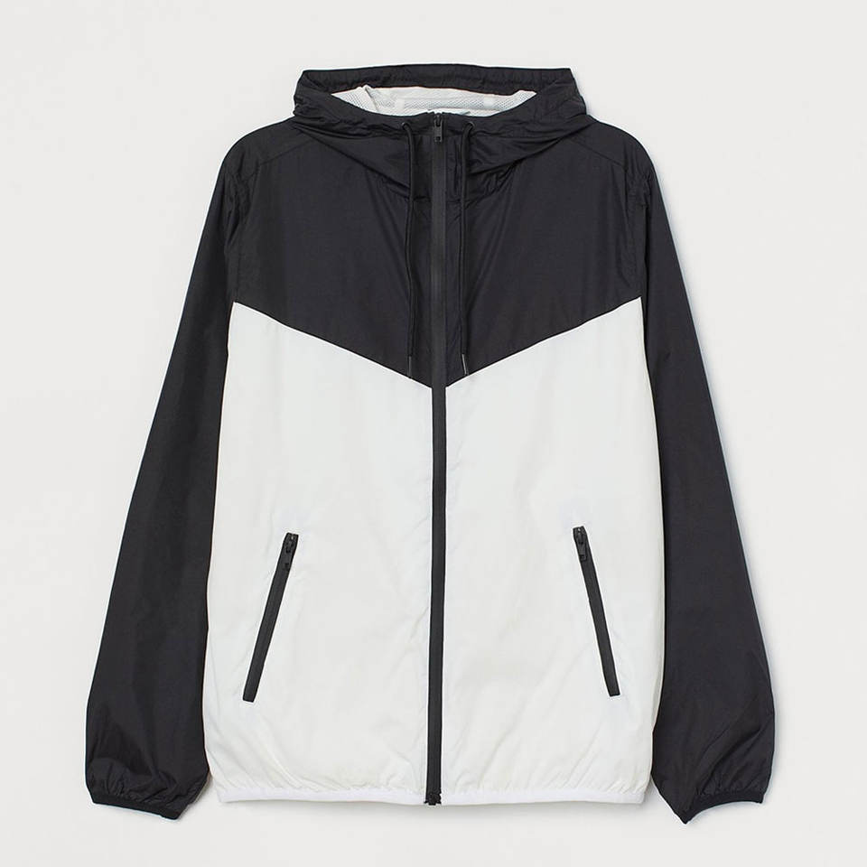 Chaqueta Cortavientos Impermeable de Lona para Hombre con Cremallera Frontal, Capucha con Logotipo y Doble Color - La Mejor Chaqueta Deportiva