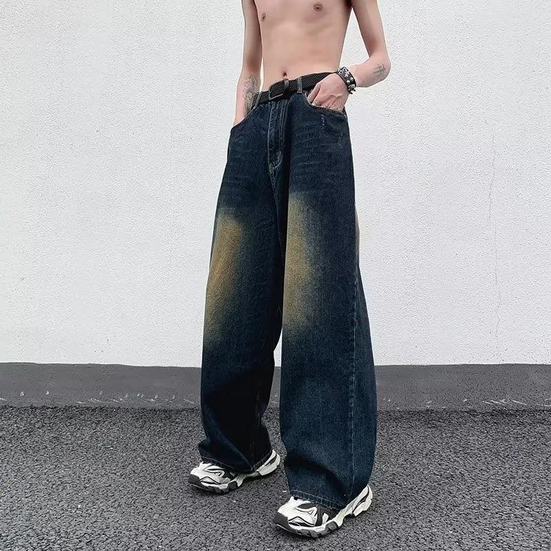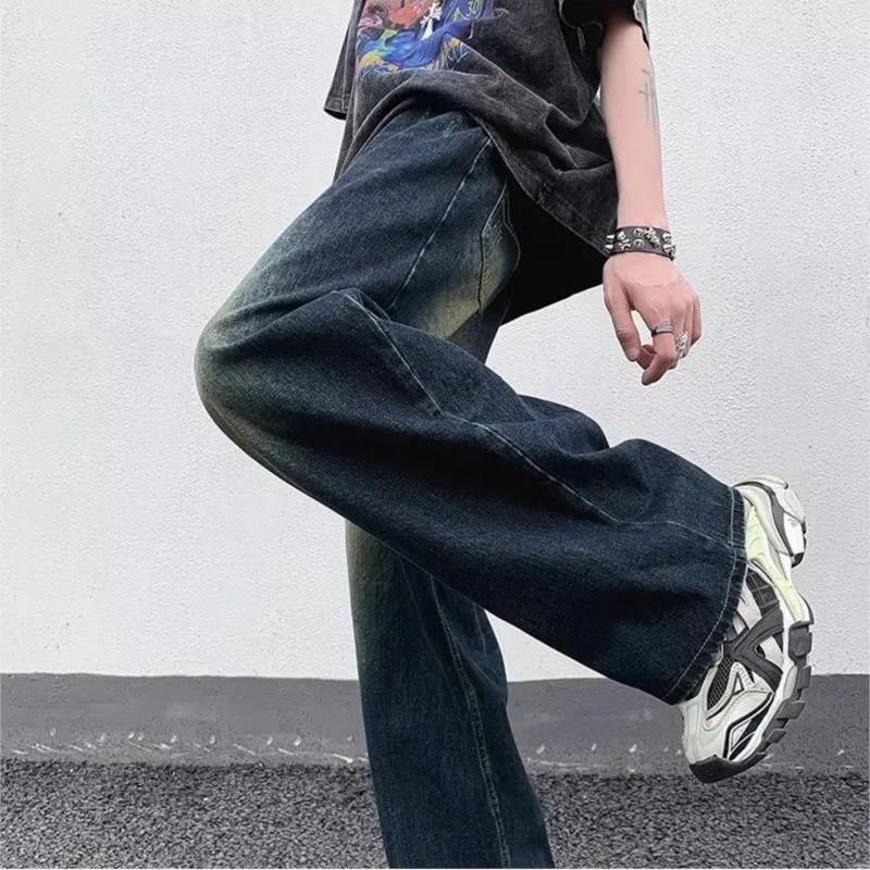 Pantalones vaqueros de estilo informal para hombre, pantalones vaqueros de pierna ancha lavados de pierna recta suelta para todas las estaciones, primavera, verano, Otoño e Invierno
