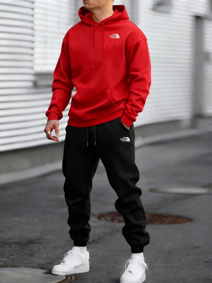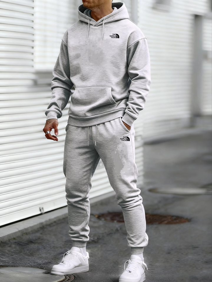 Conjunto Casual de Dos Piezas para Hombre, Talla Grande, Sudadera con Capucha de Felpa, Pantalones, Color Sólido, 100% Algodón, Bolsillos, Estilo Urbano para Otoño e Invierno