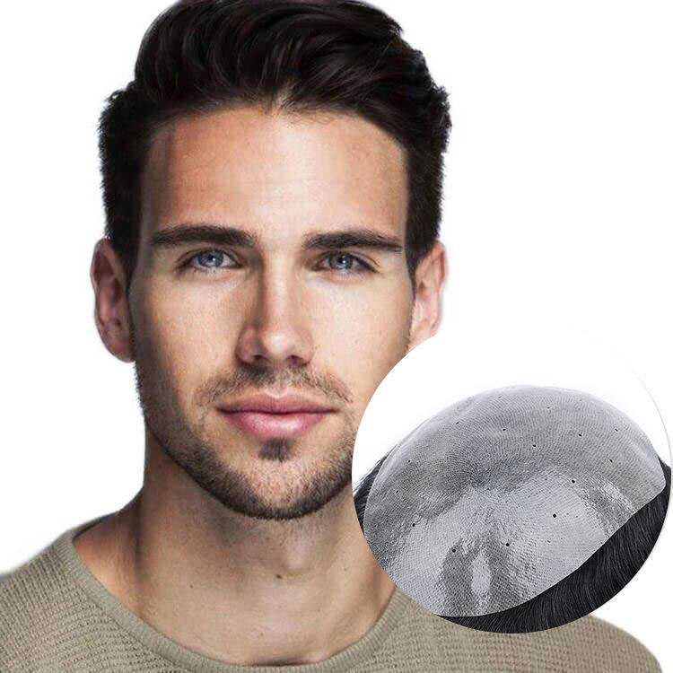 Prótesis Capilar Remy China para Hombre, 38mm, Nudo Único, Sin Costuras, Textura Ultrafina Similar al Cuero Cabelludo, Tejida a Mano, 110% de Densidad, Ondas Naturales