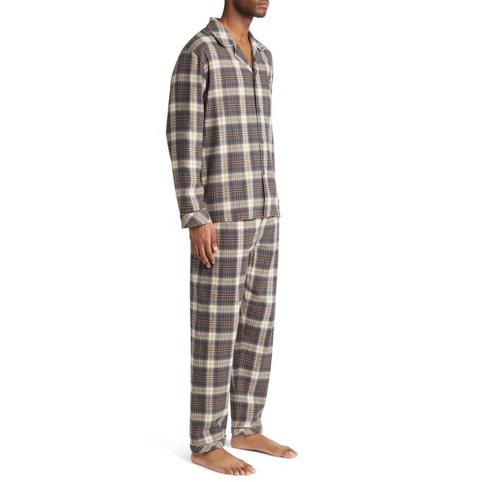 Pijama clásico de franela de algodón para hombre, conjunto de 2 piezas, transpirable, venta al por mayor, pijama de franela de regreso a casa para hombres