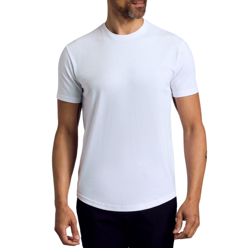 Camiseta Clásica de Cuello Redondo para Hombre, 200 Gramos, Tejido de Poliéster y Algodón, Estilo Casual Elegante con Dobladillo Curvo y Diseño Liso