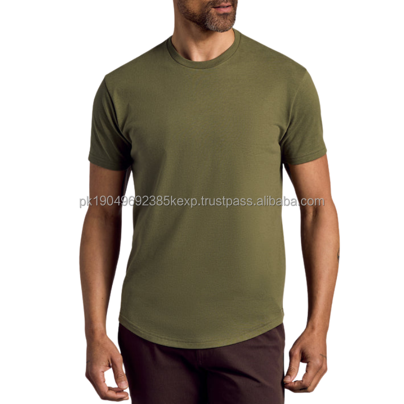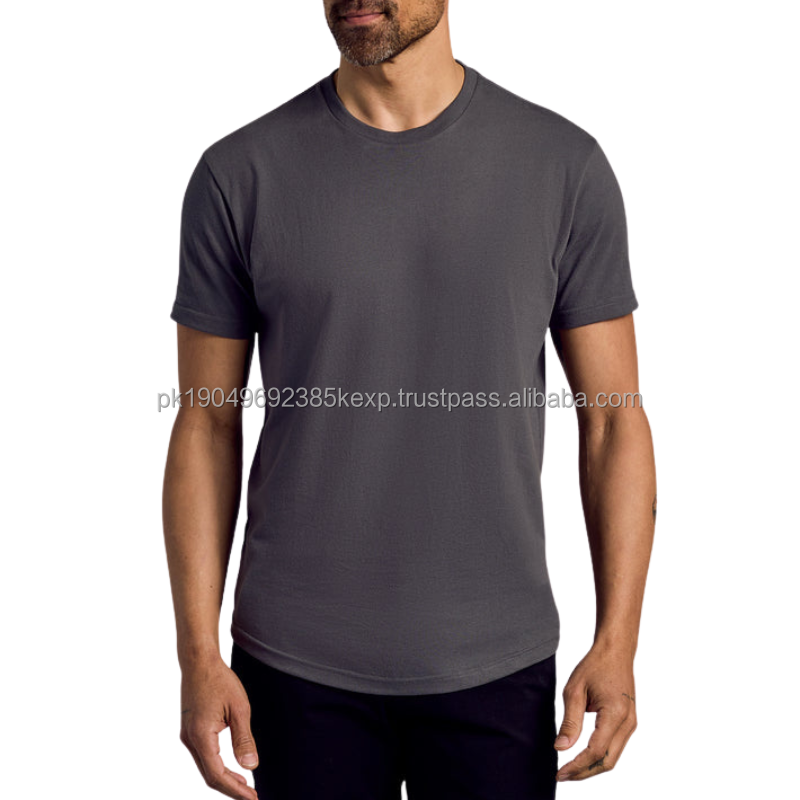 Camiseta Clásica de Cuello Redondo para Hombre, Estilo Casual Elegante con Dobladillo Curvo, Hecha de Poliéster y Algodón de Punto de 200 Gramos, Diseño Liso