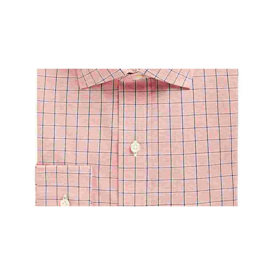 Camisa de Vestir Clásica para Hombre, Corte Clásico, Elástica, en Tela Popelina Rosa con Diseño a Cuadros, Cuello de Solapa, Talla XL (18X34-35)