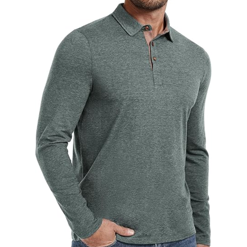 Camisa Polo Clásica para Hombre, Manga Corta o Larga, Cuello con Botones, Color Sólido, Estilo Casual