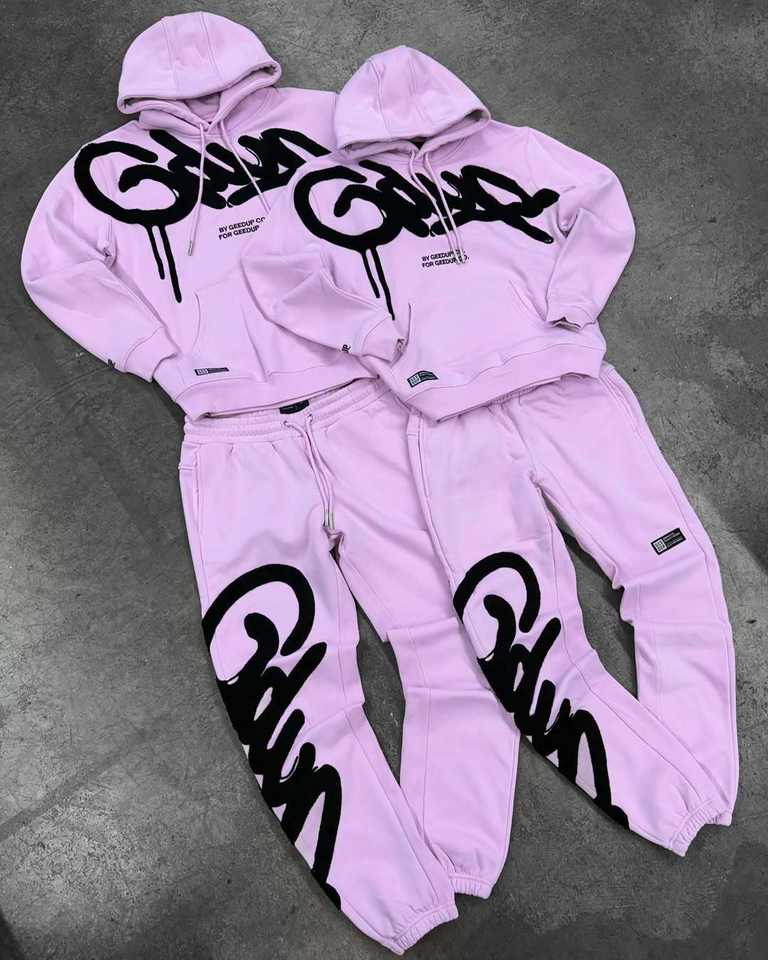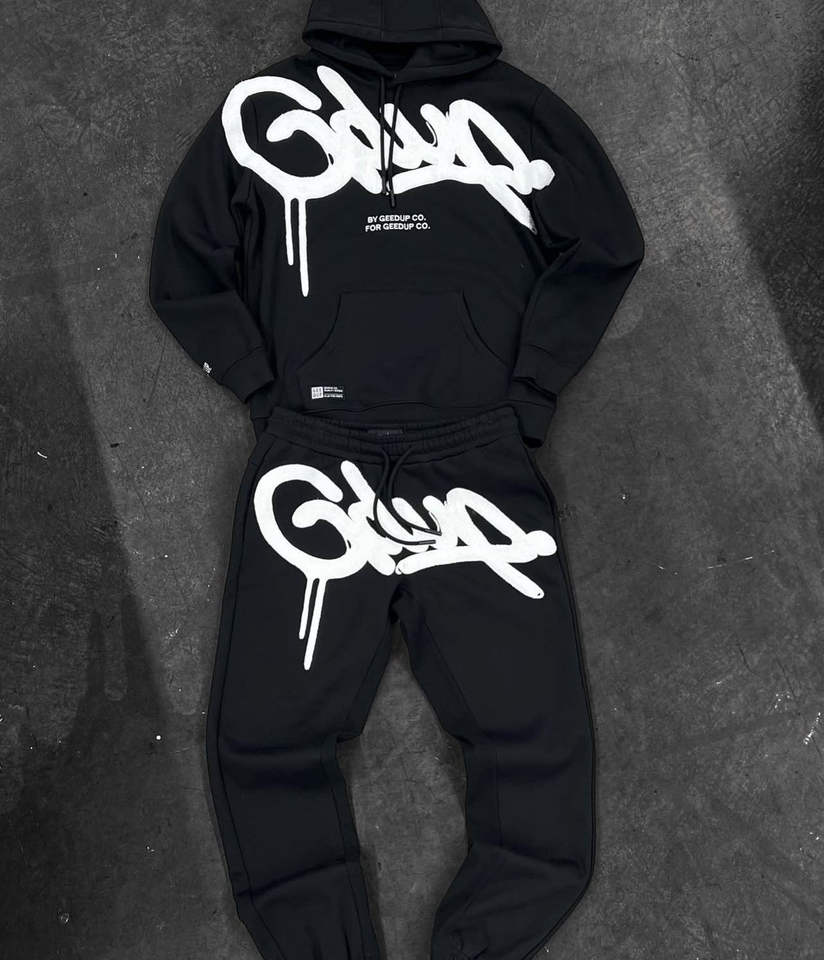Ropa de hombre de alta calidad 100% algodón GEEDUP sudadera pantalones conjunto Casual pantalones de chándal holgados para hombres y mujeres carta con capucha