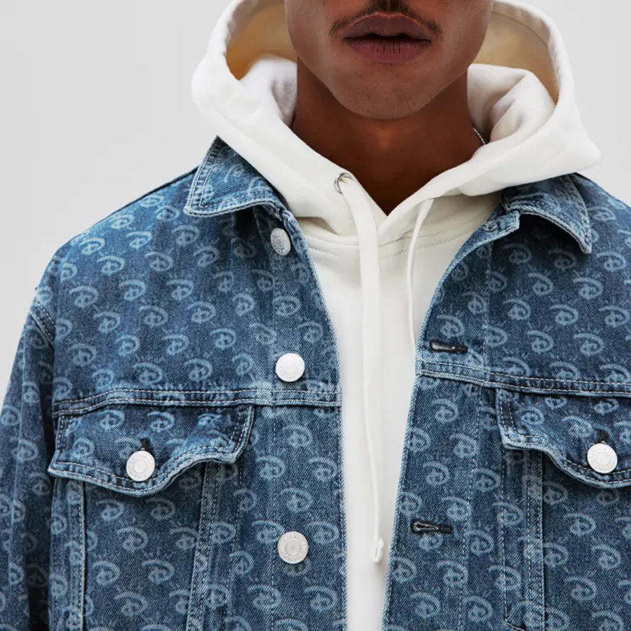 Chaqueta vaquera de lona recubierta para hombre con paneles de contraste, ropa de calle atrevida, diseño con capucha estética, ropa de abrigo de invierno transpirable