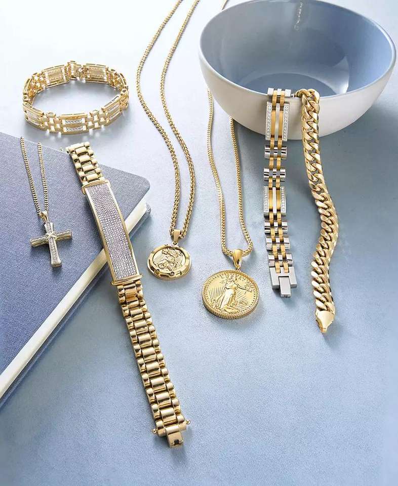 Collar con colgante de moneda de 24 "para hombre en plata de ley chapada en oro de 14K
