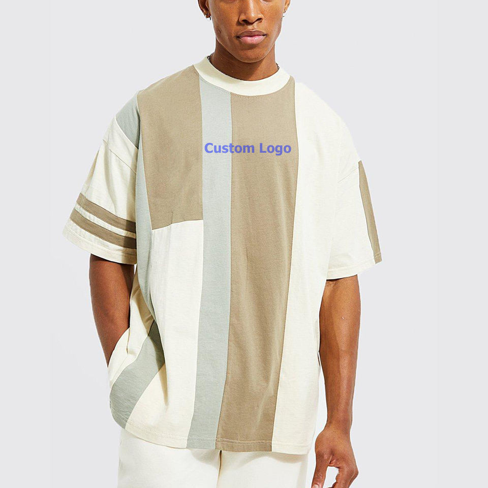 Camiseta con estampado gráfico de bloques de color para hombre, camiseta de manga corta con cuello redondo
