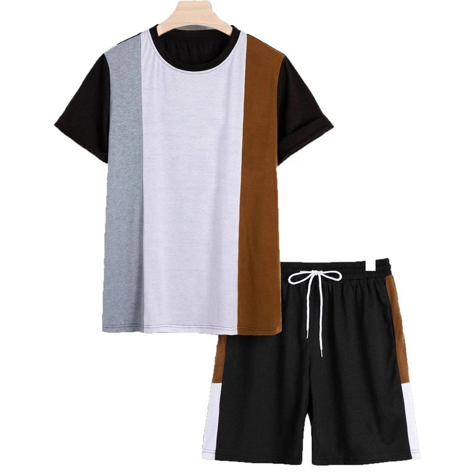 Conjunto deportivo para correr de talla grande para hombre, 2 uds., Camiseta con estampado de letras de bloque de Color, pantalones cortos con cordón en la cintura, estilo de Fitness callejero de verano sólido