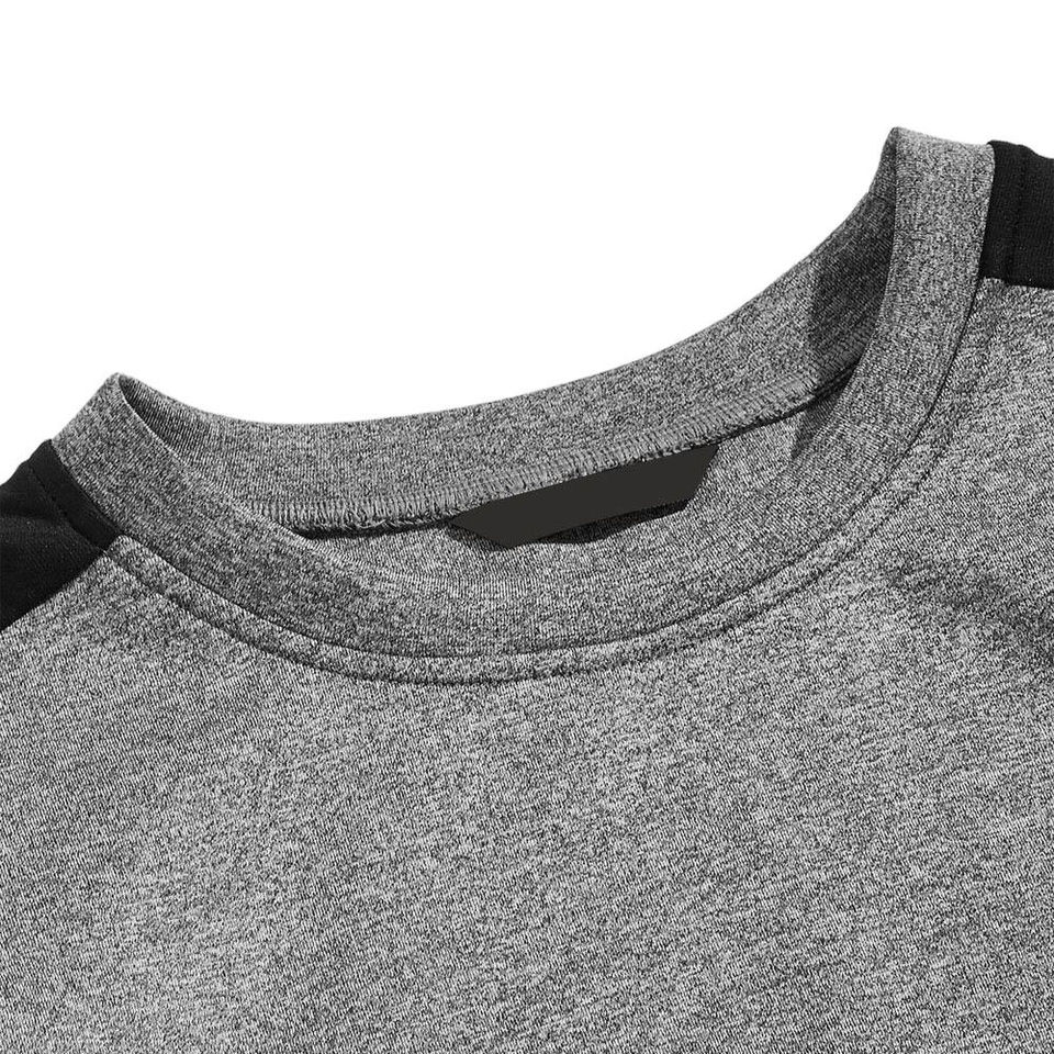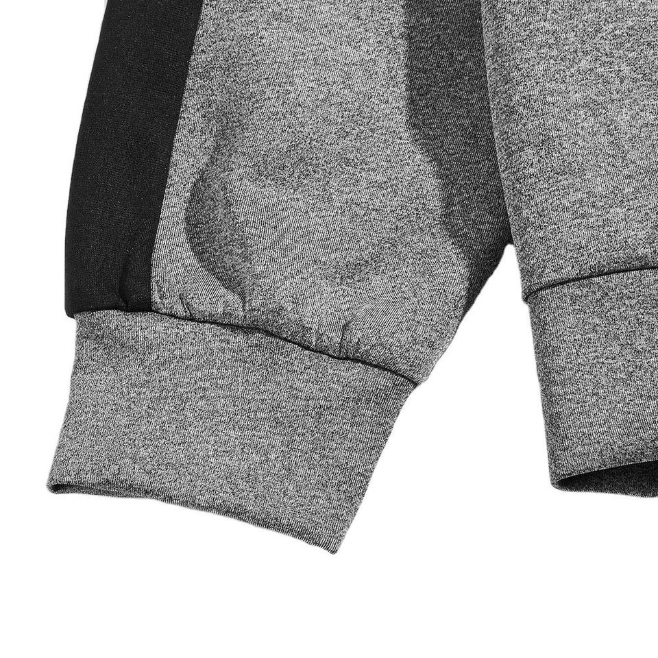 Conjunto Deportivo Color Block para Hombre - Traje de Felpa de 2 Piezas en Gris Jaspeado y Negro con Detalles de Franjas Laterales