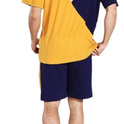 Conjunto de pantalones cortos de dos piezas con bloques de color para hombre, camiseta de manga corta y pantalones cortos en azul marino, amarillo y gris, conjunto de ropa informal de verano