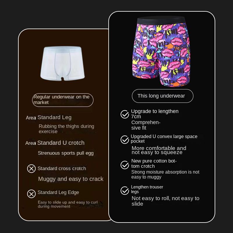 Calzoncillos deportivos largos cómodos con estampado de dibujos animados para hombre, bóxer de tiro medio con entrepierna interior antidesgaste de cuatro esquinas y pierna larga