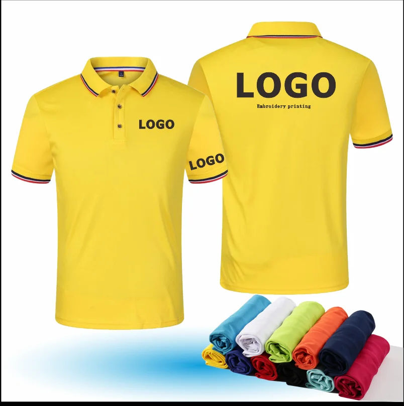 Cómodos uniformes de negocios de secado rápido para hombres, logotipo personalizado, manga corta para Polo con patrón sólido, bordado estampado de equipo