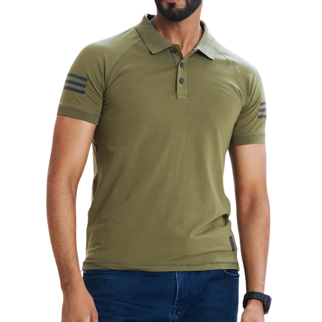 Tela de punto de algodón orgánico verde con patrón sólido cómodo para hombre, 220g, manga corta, botón frontal, elegante, informal para camisas