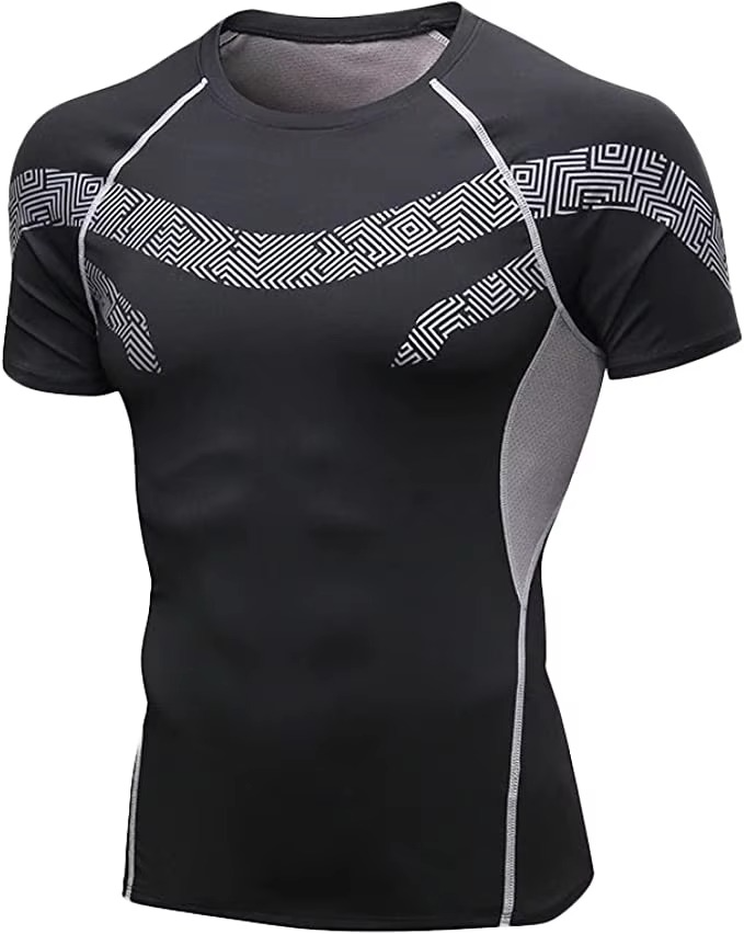 Camiseta de compresión para hombre, camiseta de entrenamiento de sublimación con estampado atlético de media manga, transpirable, para correr, gimnasio, precio bajo, 2025