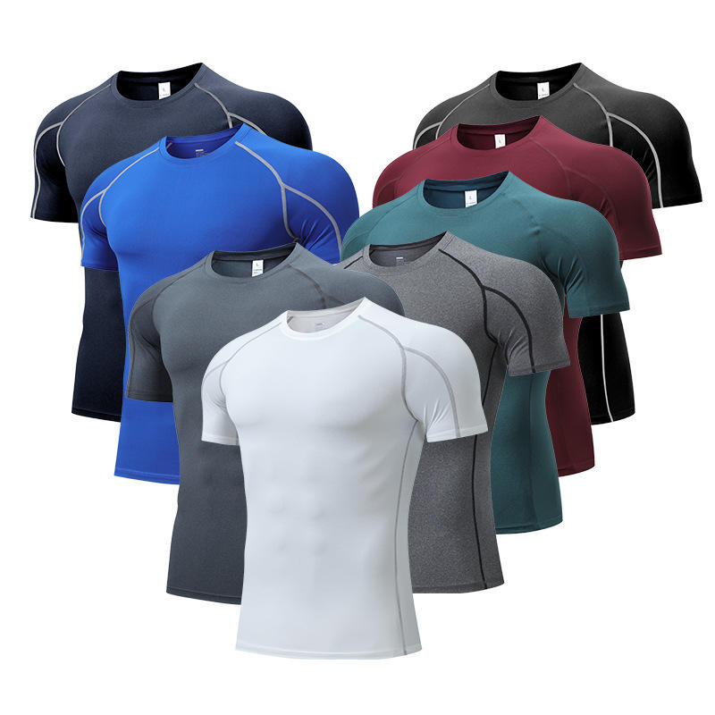 Camiseta de manga corta de secado rápido de compresión para hombre, camiseta sólida de 180 gramos para Amazon Sports Running Training Basketball Fitness Shirt