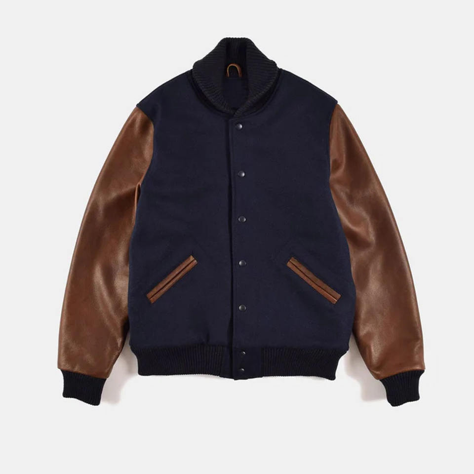 Chaqueta de béisbol abotonada de poliéster de algodón para hombre con logotipo frontal Color Blocking Varsity Letterman Street Style Jacket