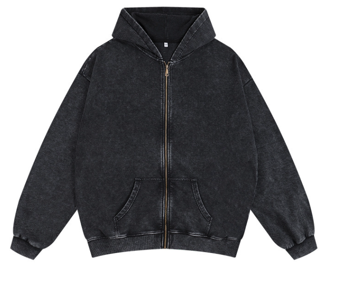 Sudadera con capucha de algodón y poliéster con cremallera completa para hombre Sudadera con capucha con estampado de color sólido