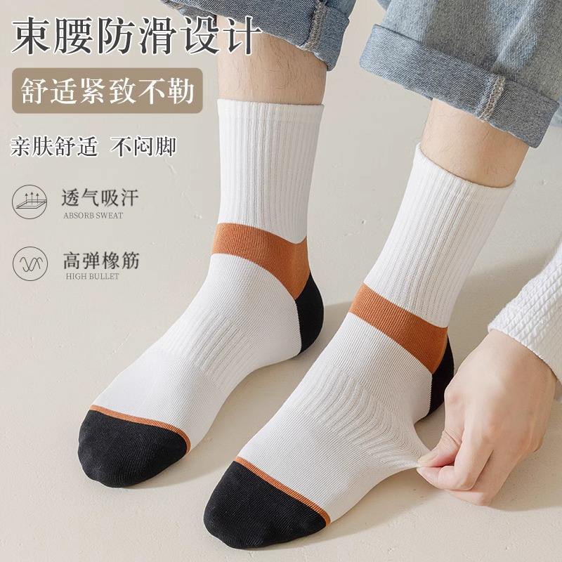Men's Crew Socks Color-Blocked Polyester Fiber Sweat-Absorbent Regular Casual Socks For Spring Autumn Sports