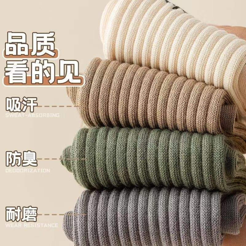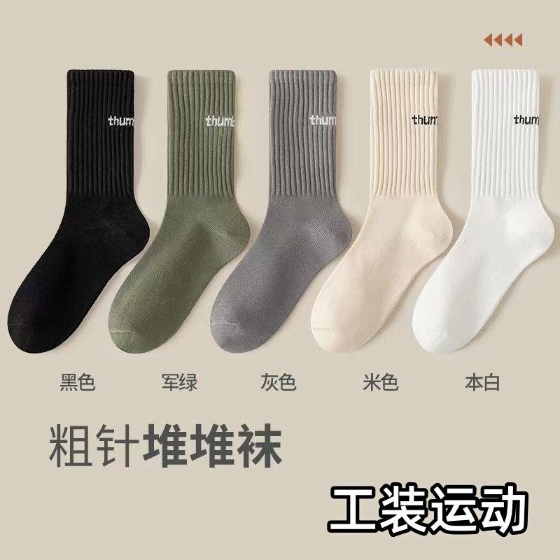 Men's Crew Socks Solid Color Lettered Breathable Sweat Absorbent Casual Sport Style Zhuji Socks Spring Autumn