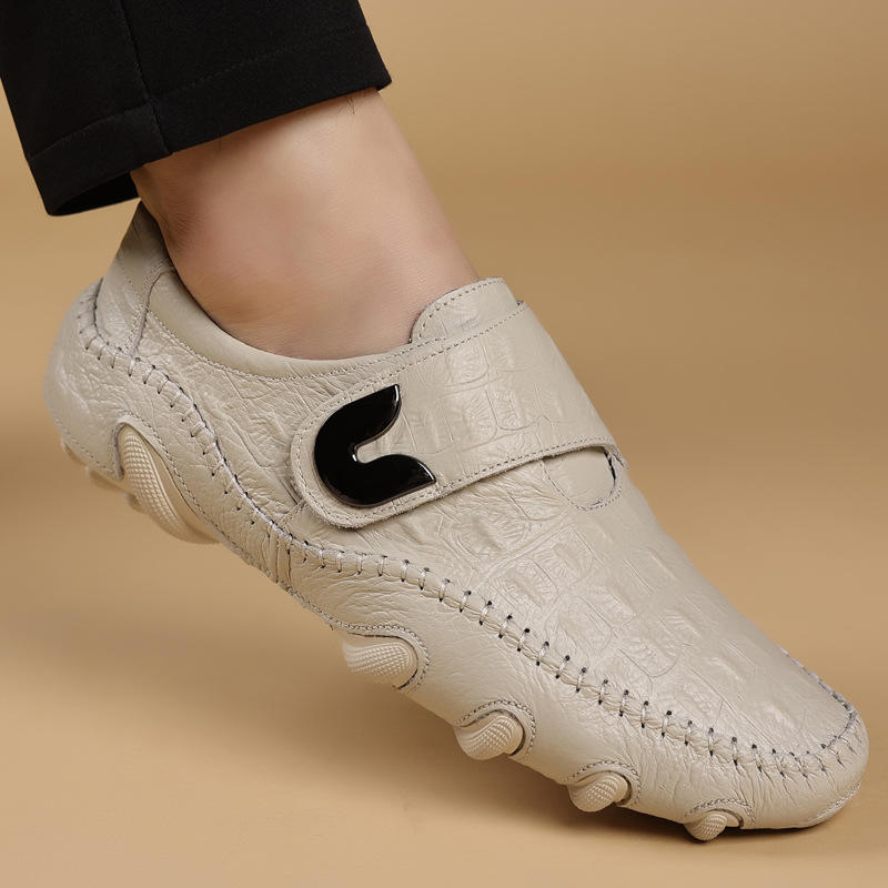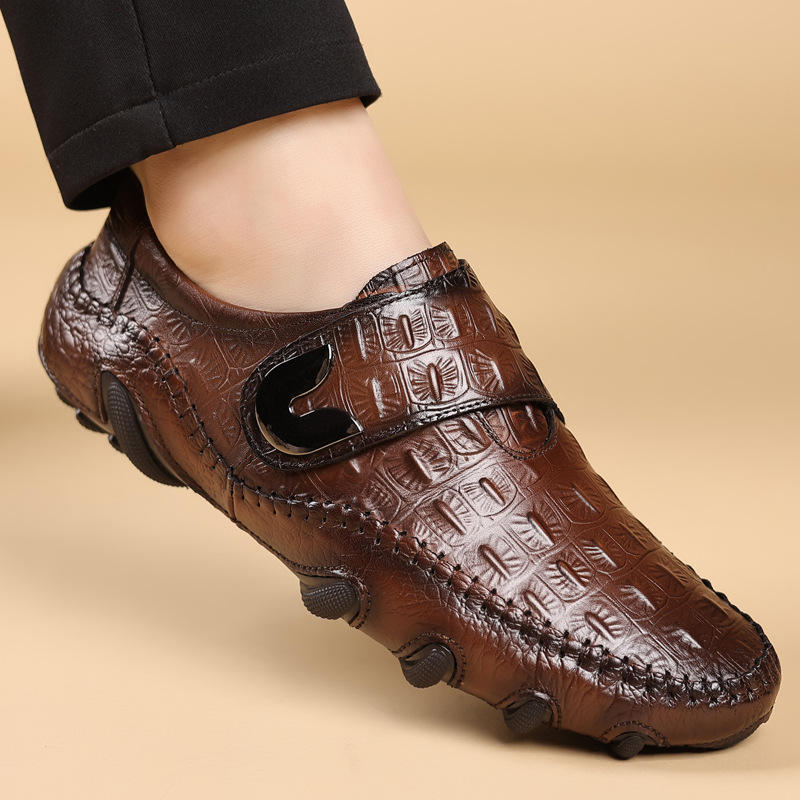 Mocasines con Patrón de Cocodrilo para Hombre, Piel de Vacuno de Primera Capa, Cierre de Velcro, Tacón Plano, Transpirables, para Uso Diario, Talla 46 47