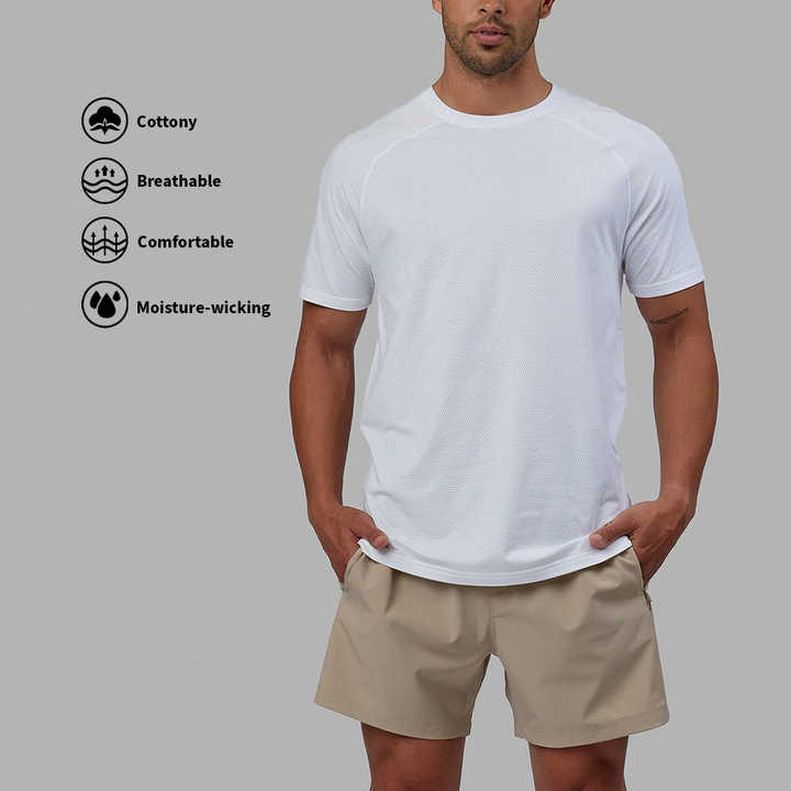 Camiseta básica de gimnasio de poliéster 100% personalizada para hombre, Camiseta deportiva blanca con cuello redondo y Jersey de punto transpirable, ajuste informal largo
