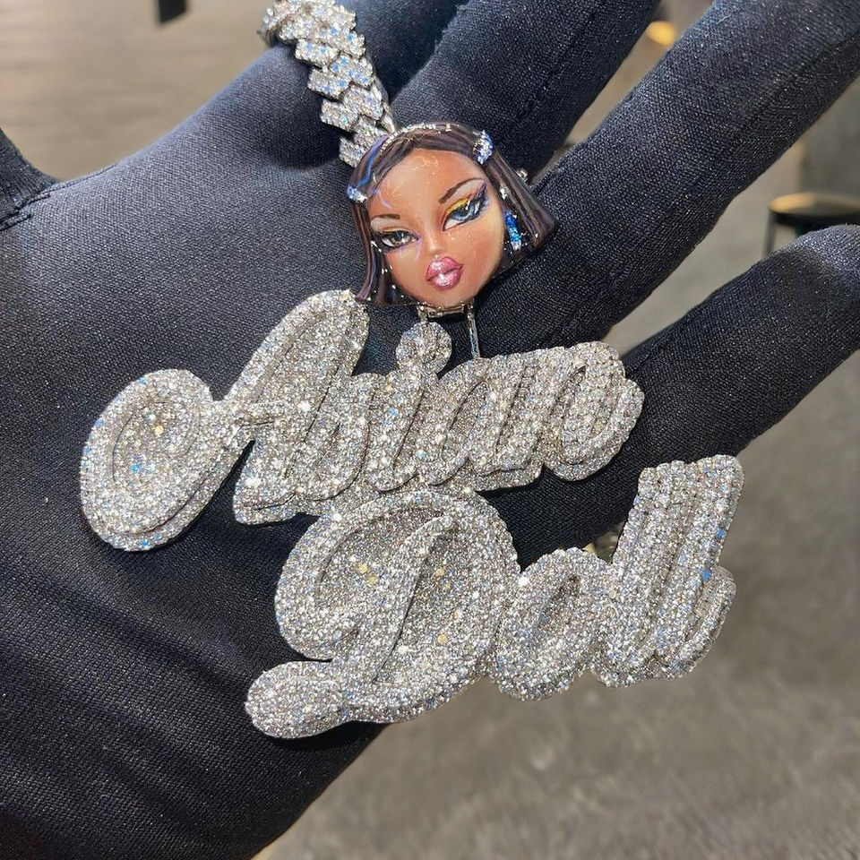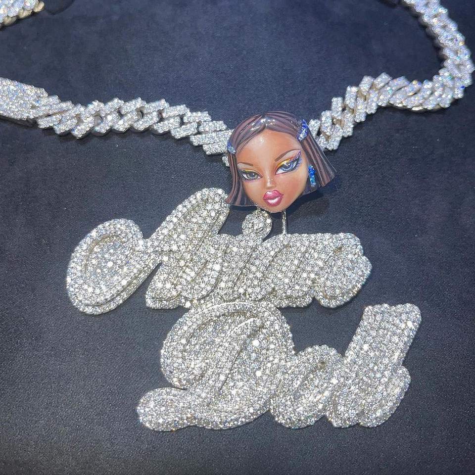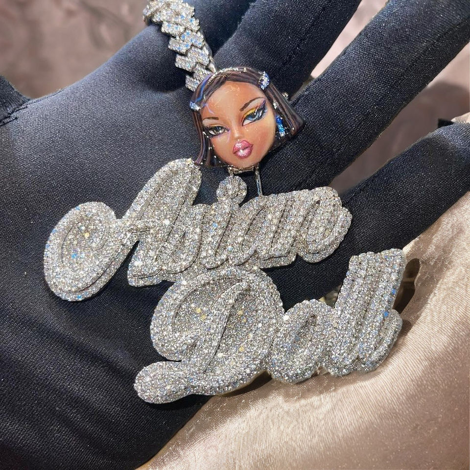 Hombres personalizado 3D cara esmalte Bling Iced rapero gran estilo Hip Hop 925 Plata hacer su propio nombre Moissanite diamante colgante fiestas