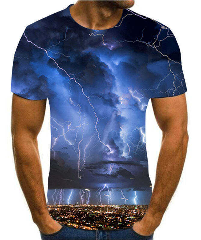 Camiseta Personalizada para Hombre con Efecto de Luces Impresas en 3D, de Alta Calidad, Transpirable, de Secado Rápido, Manga Corta, Sublimación, 220g, Poliéster Sólido