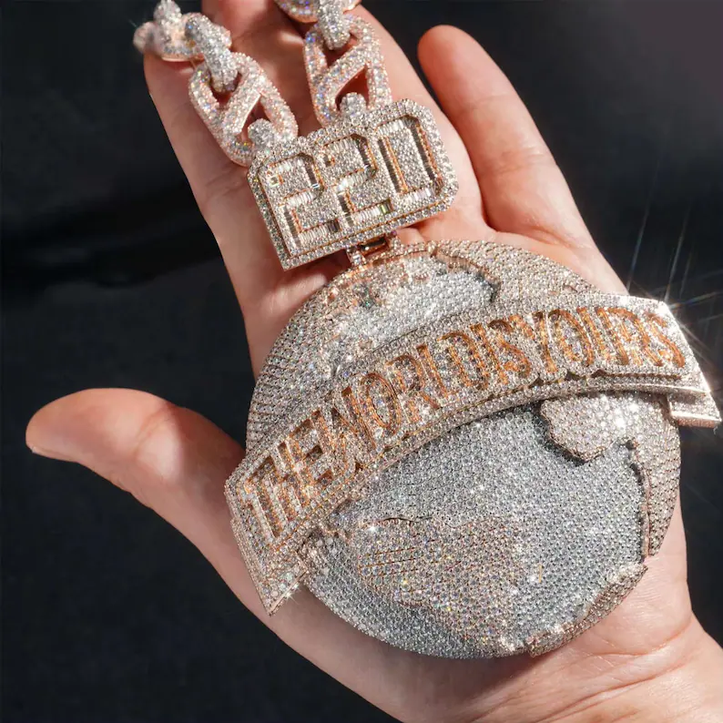 Colgante de moissanita con abalorio personalizado para hombre, colgante de Hip Hop, colgante de forma redonda para joyería de moda para hombre