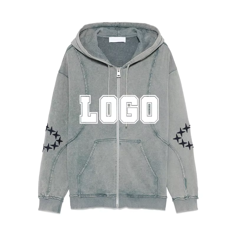 Sudadera con Capucha y Cremallera para Hombre, Personalizada con Logotipo Bordado, Tejido Grueso de Algodón French Terry 2026, Lavado Ácido