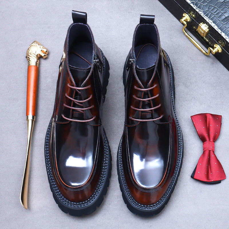 Botas de Tobillo Estilo Inglés Personalizadas para Hombre - Oficina y Carrera, Antideslizantes, para Todas las Estaciones, Cuero Brillante, Cierre de Cremallera, JiuZhou C1226-21