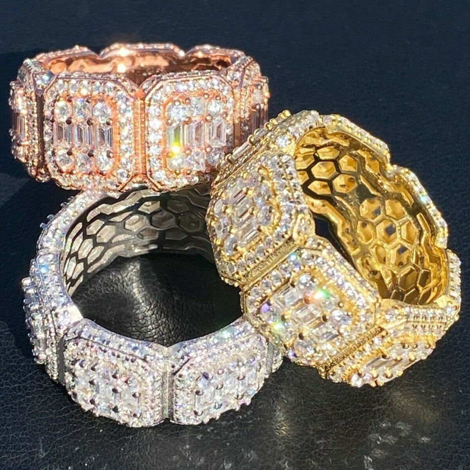 Anillo de Compromiso de Oro Rosa de 14k con Incrustaciones de Moissanita, Estilo Rapero, Personalizado para Hombre, Joyería Fina, Clásico Hip Hop Champion, Certificado IGI de Laboratorio