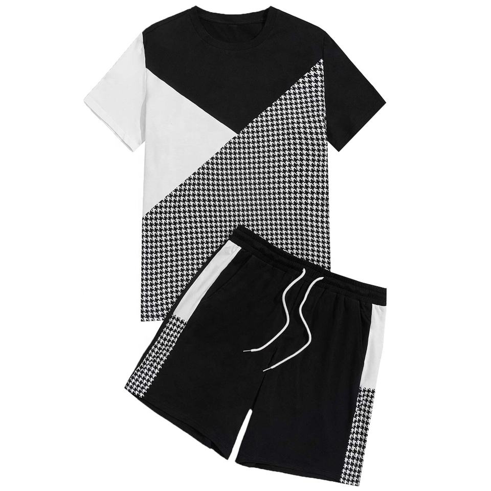 Ropa de calle de 2 piezas con logotipo personalizado para hombre, ropa deportiva, chándal informal, camiseta de bloque de color sólido, pantalones cortos para correr con cordón