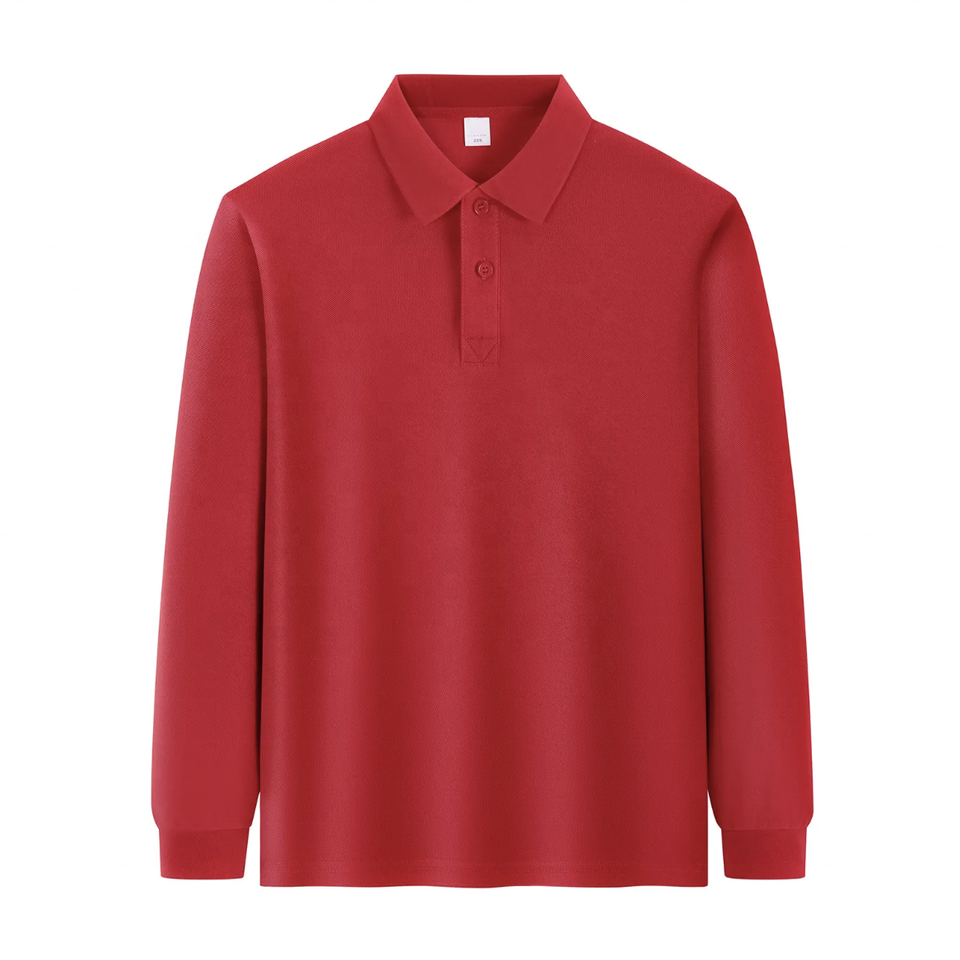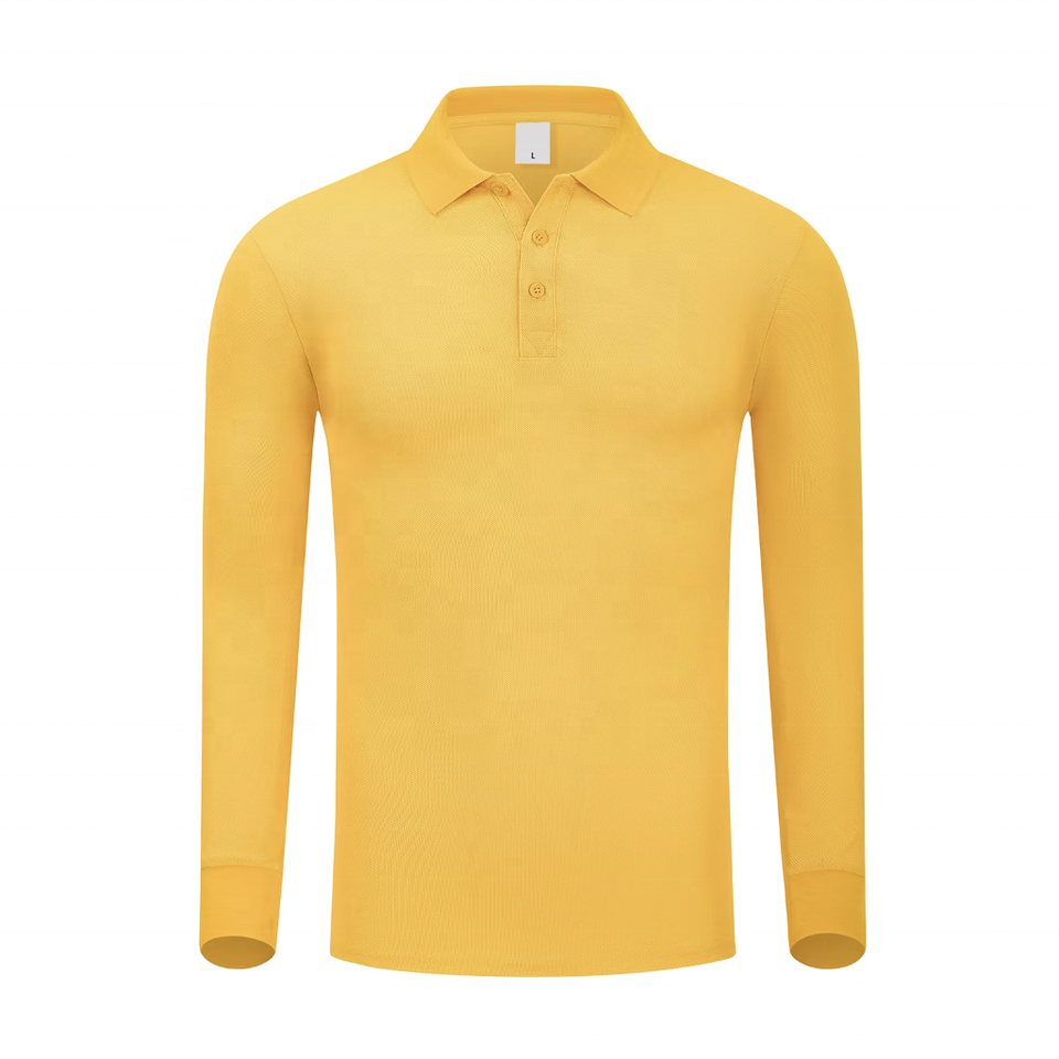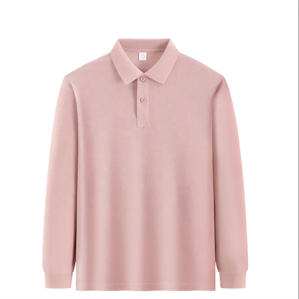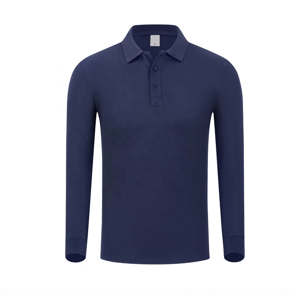 Camiseta de polo de cuello largo informal de manga larga bordada con logotipo personalizado para hombre, camiseta transpirable de talla grande, camisa en blanco de punto OEM sólida