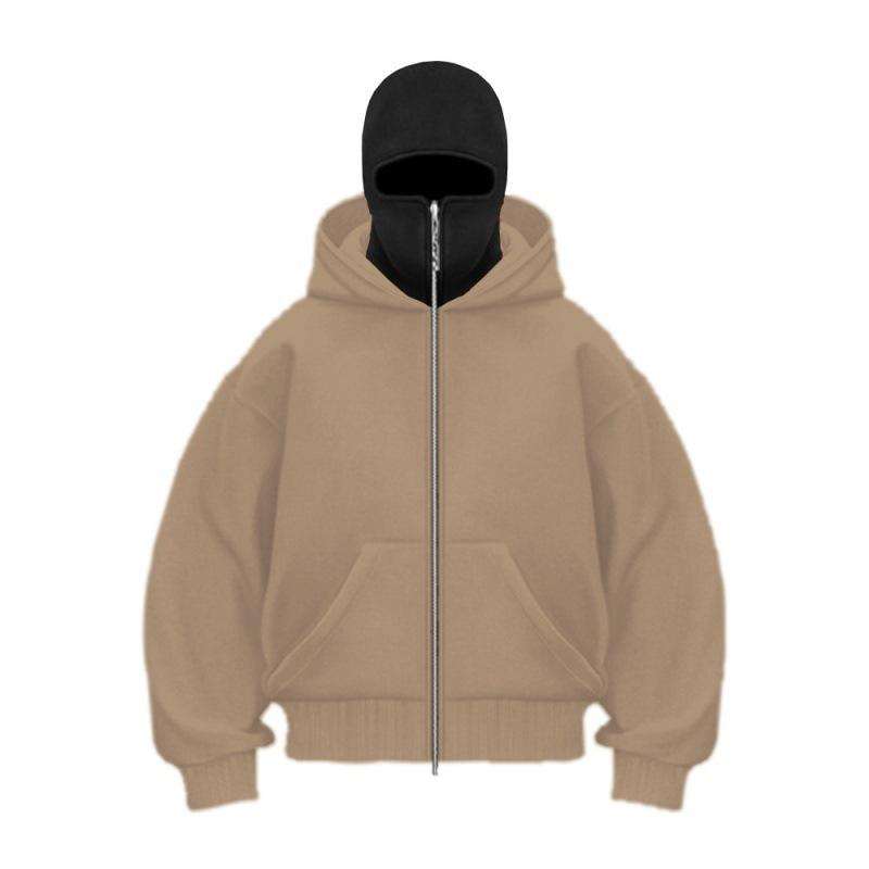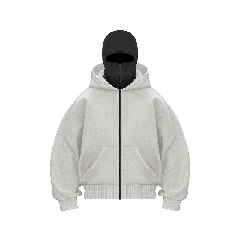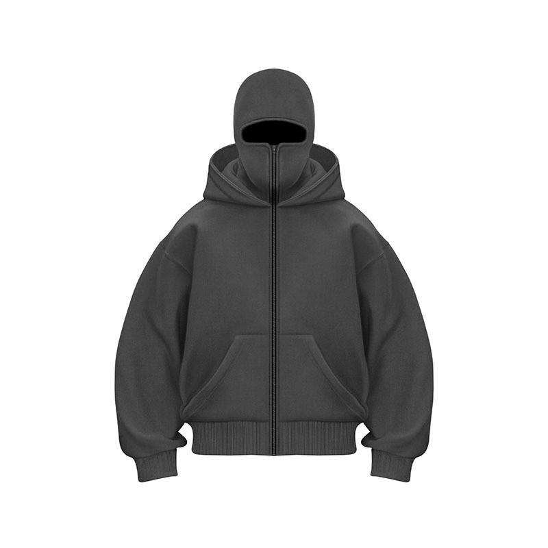 Sudadera con Capucha Balaclava Bordada con Logotipo Personalizado para Hombre, Doble Capa, Cierre Completo, Talla Grande, Diseño 3D Extra Grande