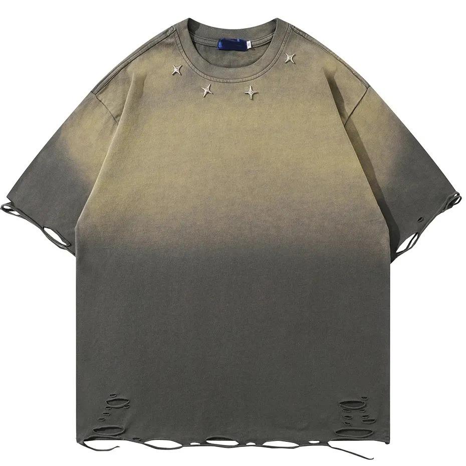 Camiseta desgastada de microfibra con bordado de logotipo personalizado para hombre, tejido de punto de algodón 100%