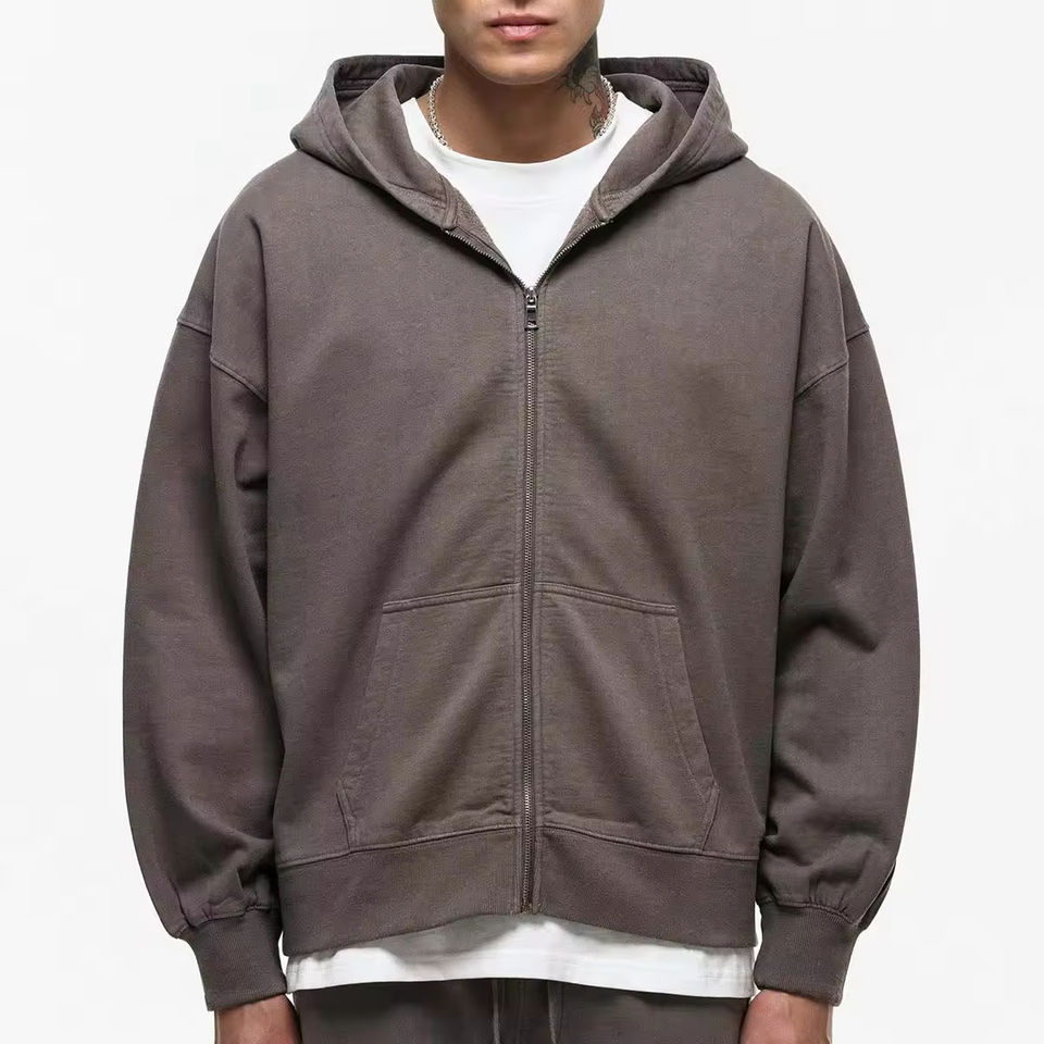 Sudaderas con capucha con cremallera completa de lana de gran tamaño con logotipo personalizado para hombre, ropa de calle de felpa francesa con estampado Vintage, sudadera con cremallera y cremallera