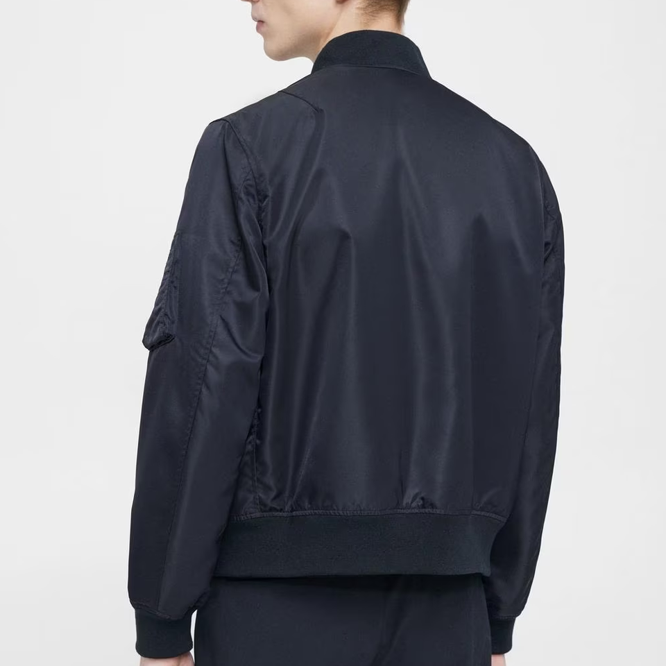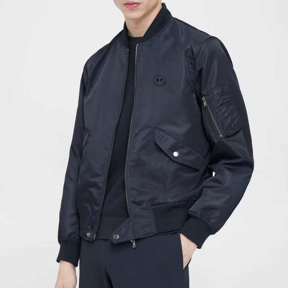 Chaqueta Bomber de satén con logotipo personalizado para hombre, ropa de calle de moda de calle con lona de poliéster, estilo destacado con logotipo frontal