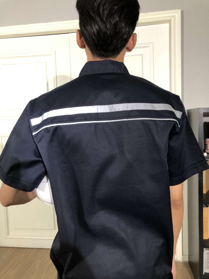Camisas de trabajo de seguridad de manga corta con logotipo personalizado para hombre con bolsillos uniformes de recepción de hotel de longitud regular para verano