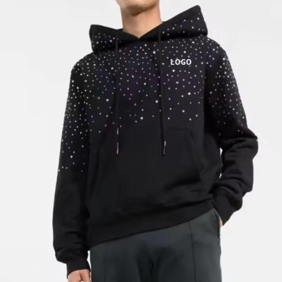 Chaqueta de Forro Polar Extra Grande Personalizada para Hombre con Capucha Estampada y Adornos de Pedrería (Personalizada)