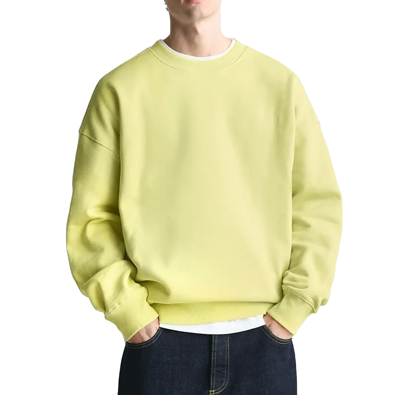 Sudadera personalizada de gran tamaño con hombros caídos para hombre, jersey de lana con cuello redondo bordado, sudadera de algodón con capucha